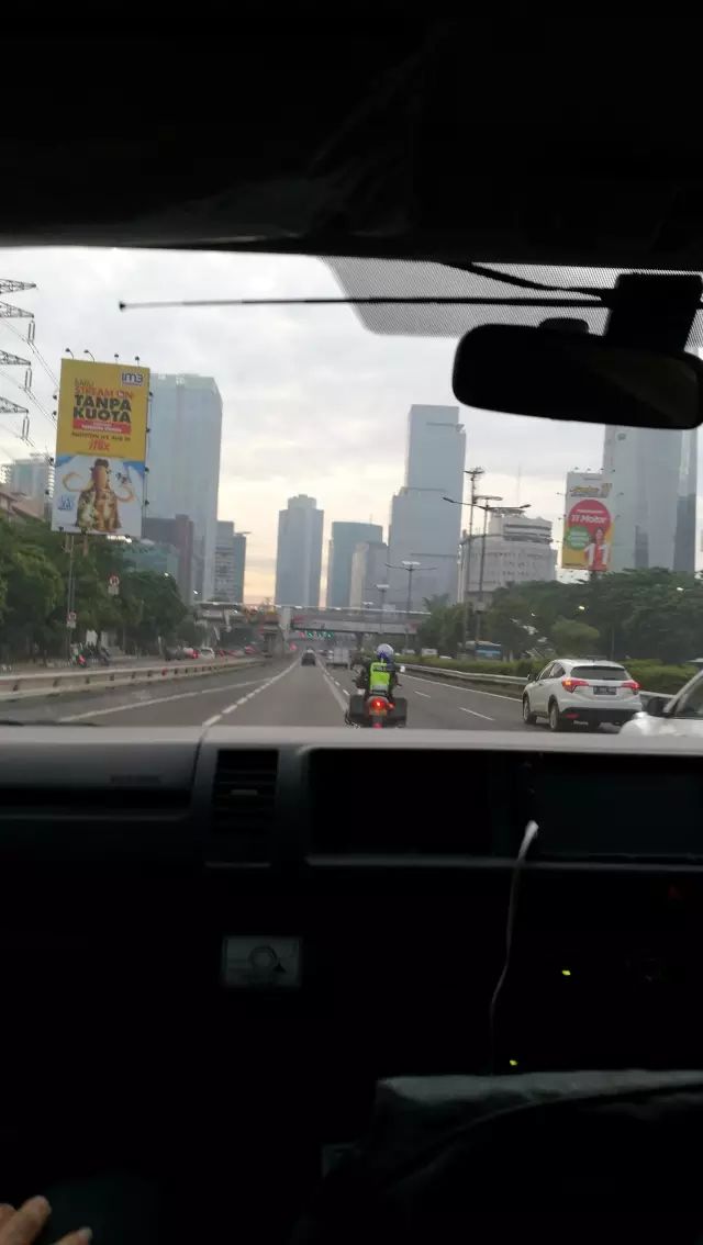 咦?前方怎么有警车开道?其实在雅加达,只要花钱就能请到警车开路,这不是什么特权,只是为了节省时间,于是有了这一幕——